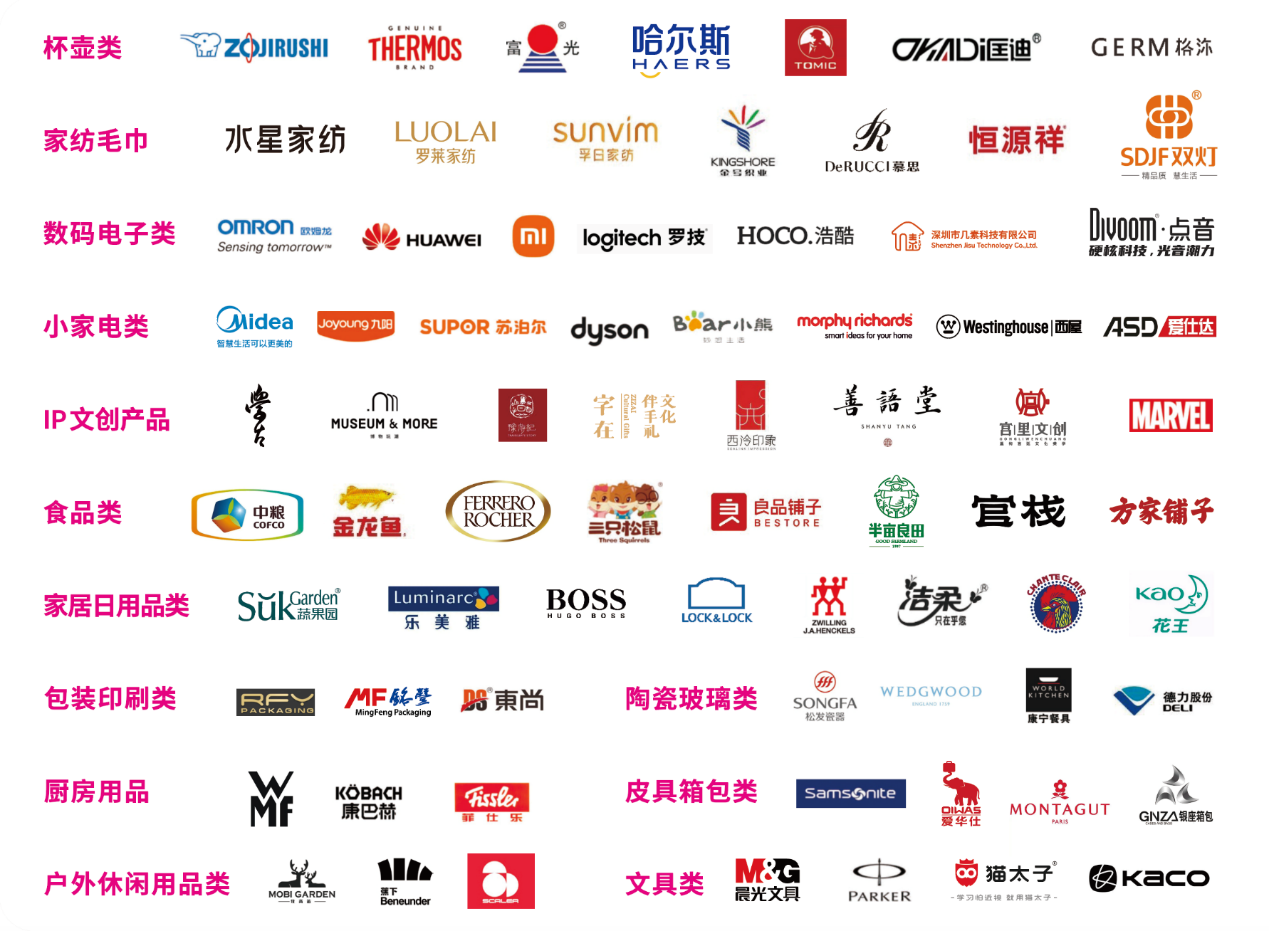 工艺品、陶瓷、水晶及玻璃制品、珠宝及时尚饰品、钟表、玩具、家纺用品运动及休闲旅游用品、美容保健产品、钱币及收藏品、文具及文化用品、烟具及打火机、广告类赠品、箱包皮具、家居装饰品、包装及纸质制品、电子及电器、餐桌用品、厨房用品、媒体、协会及贸易服务