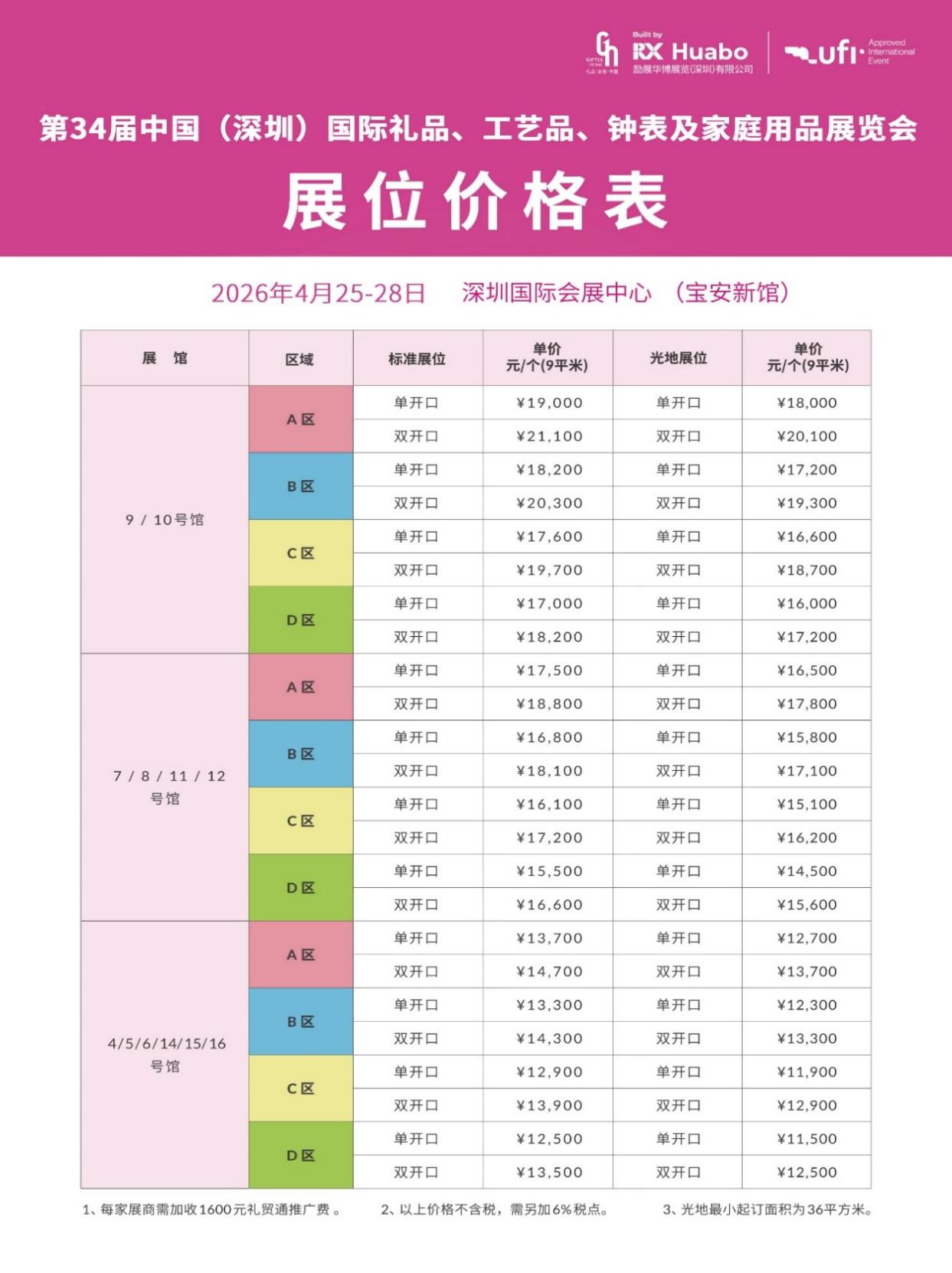展位价格: